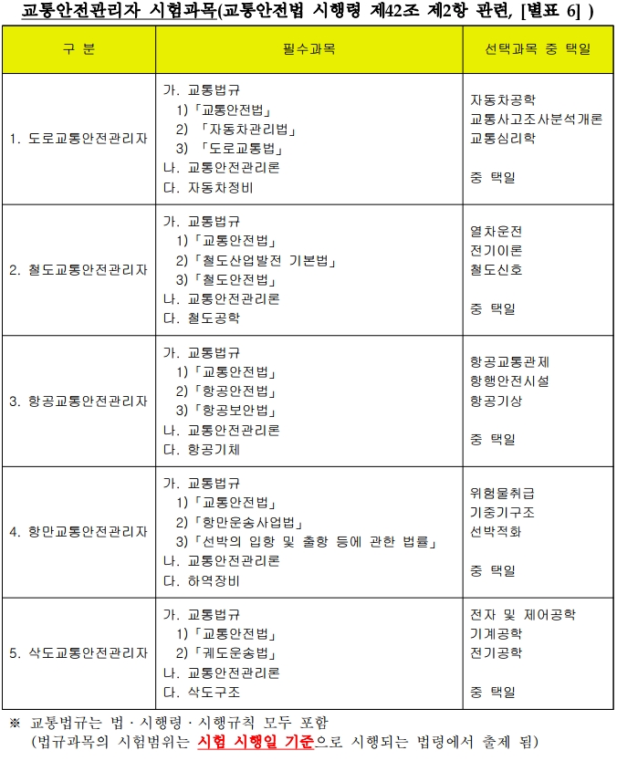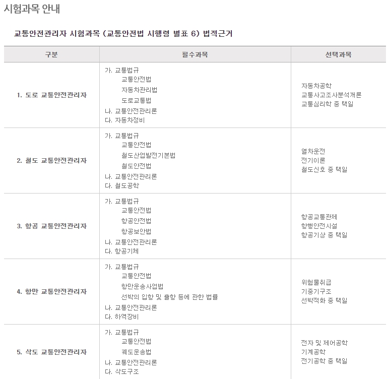 교통안전관리자 자격시험 과목