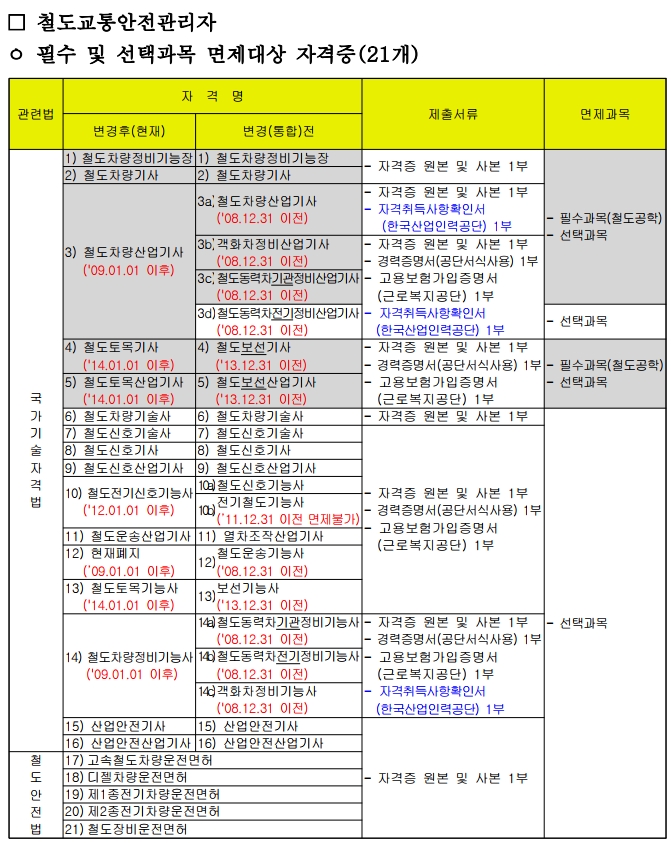 필수과목은 교통법규 - 교통안전법/철도산업발전기본법/철도안전법, 교통안전관리론, 철도공학이며 선택과목은 열차운전, 전기이론, 철도신호 중 택일입니다.