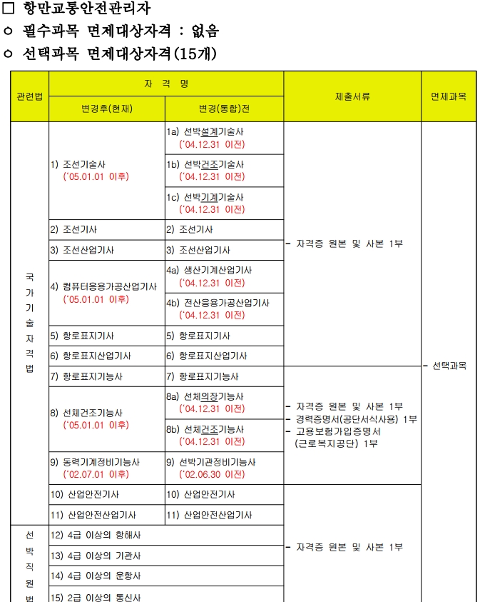 필수과목은 교통법규 - 교통안전법/항만운송사업법/선박의 입항 및 출항에 관한 법률이며 교통안전관리론, 하역장비입니다. 선택과목은 위험물취급, 기중기구조, 선박적화 중 택일입니다.