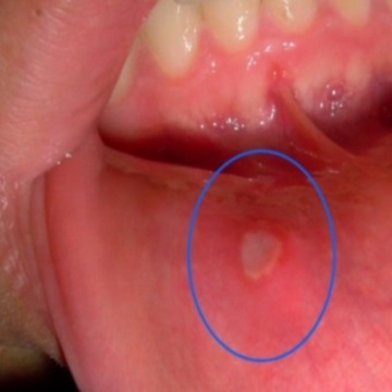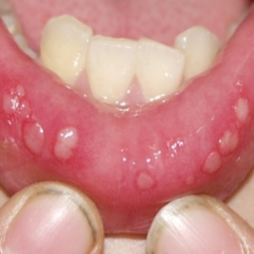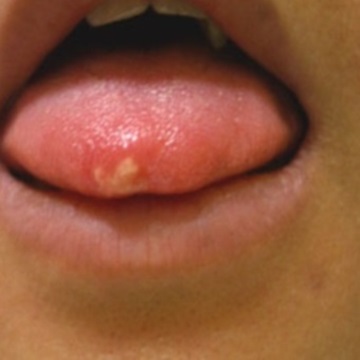 가장 많은 수를 차지하고 있습니다. 궤양성이라 부르기도 하는데 하얗거나 노르스름한 막으로 덮힌 염증이며 이 주변은 빨간 테두리가 보입니다. 뺨 안쪽, 혀, 잇몸, 입술 안쪽에 생기기 쉽고 1~2주 정도면 자연스럽게 개선되는 경향이 많습니다.