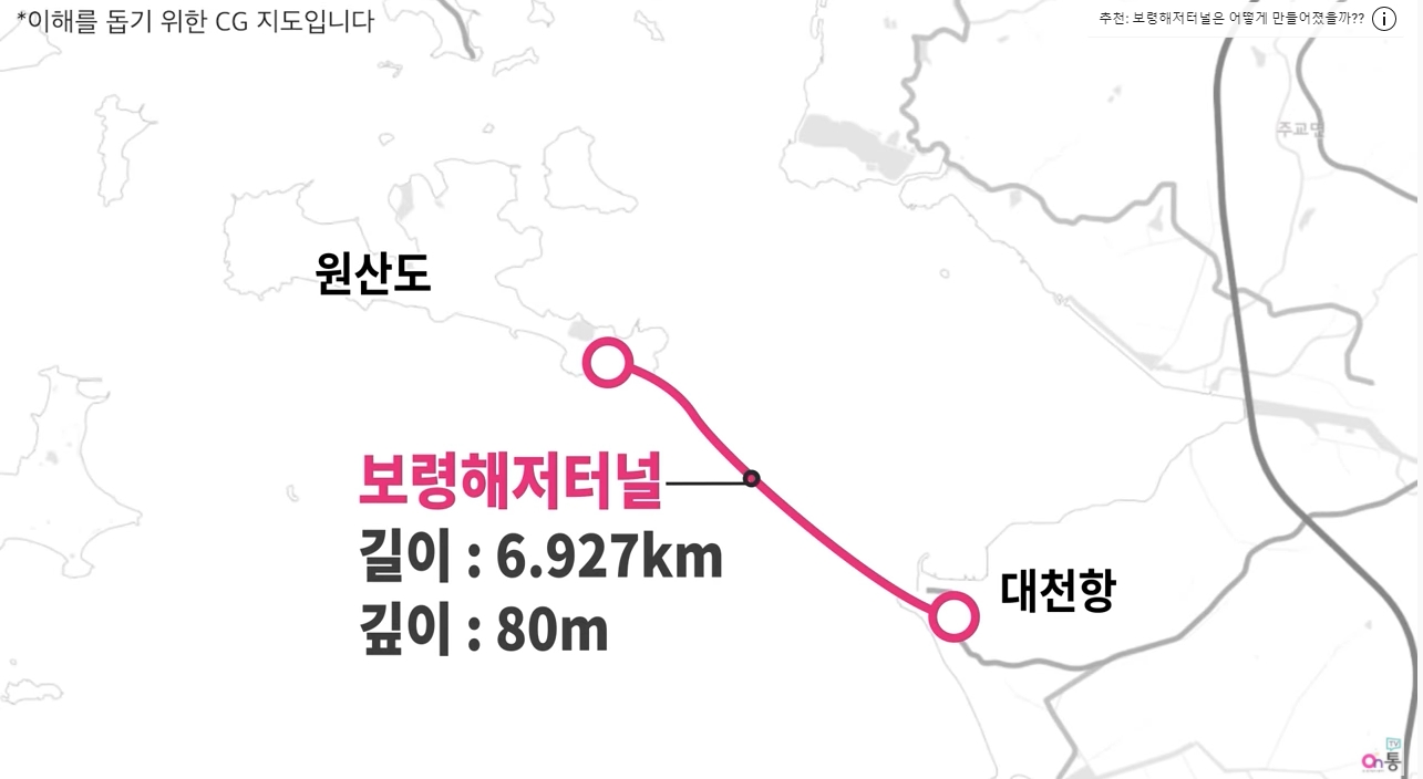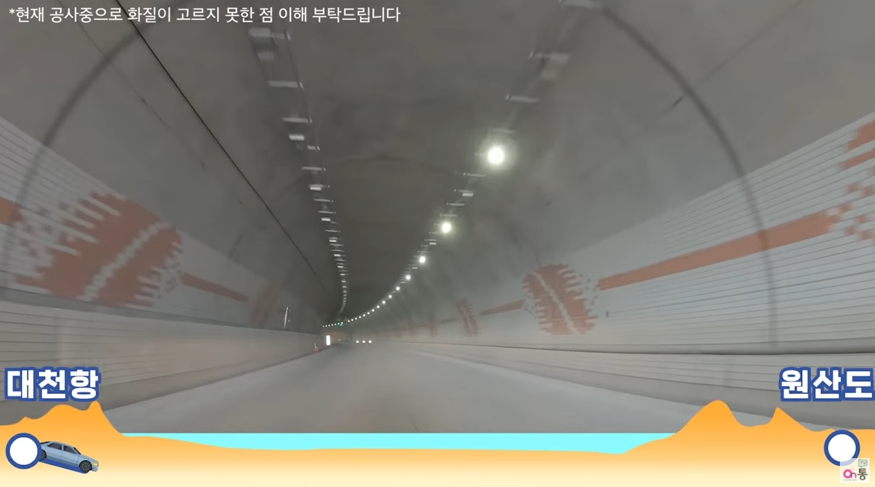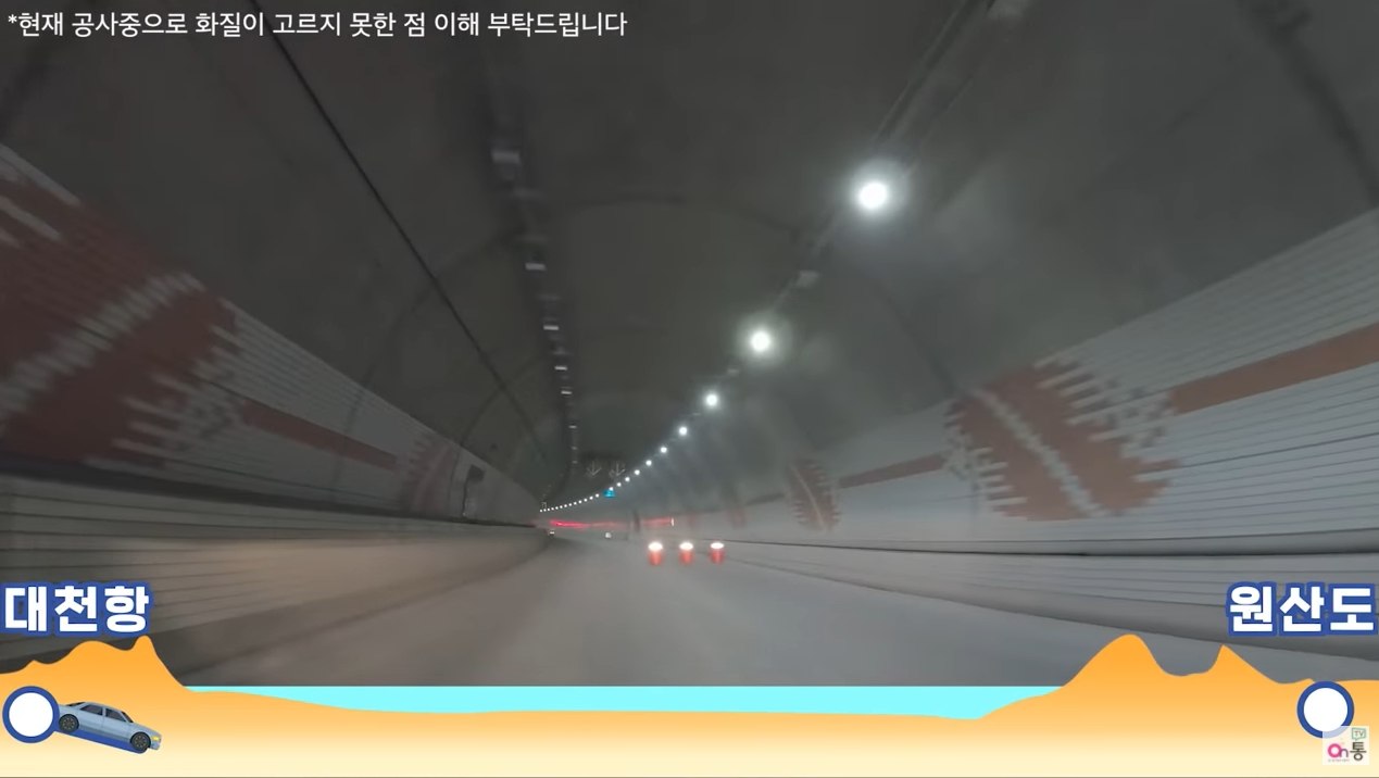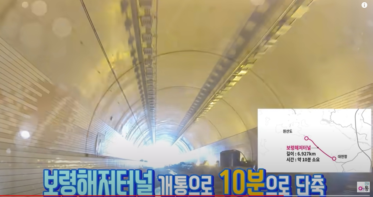 충남 보령시 대천항과 원산도를 잇는 총 6927m 해저터널로 77호 국도의 일부가 됩니다. 이 터널이 완공되어 개통하게 되면 원산안면대교와 함께 보령, 대천에서 안면도를 잇게 되는데 2012년 4월 착공해서 2019년 6월10일 관통했으며 11월30일 개통을 앞두고 있습니다.