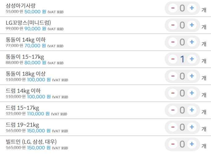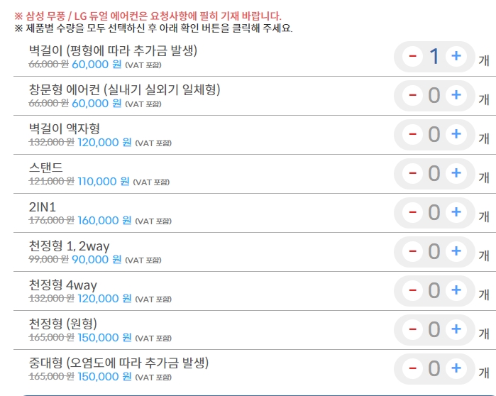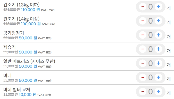 물론 벽걸이라고 해도 또 크기에 차이가 있을 수 있고 해서 가격이 좀 더 비싸질 수는 있지만 용납 못할 가격대는 아닌 것 같습니다. 여기에 세탁기나 매트리스 청소와 비데 케어까지도 함께 토탈케어로 신청할 수도 있게 되어 있어 미리 얼마 정도가 들 것 같다는 예산을 잡을 수 있었습니다.