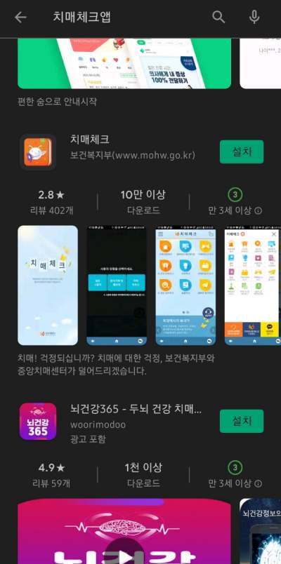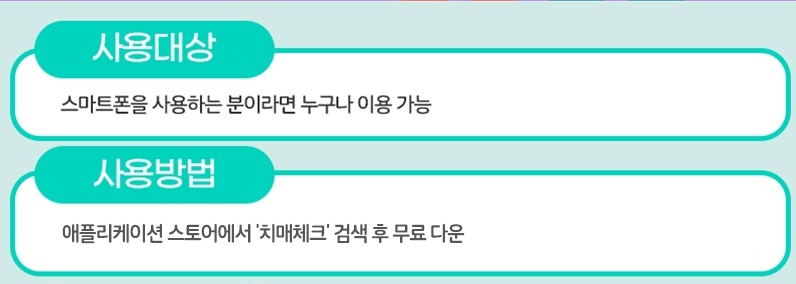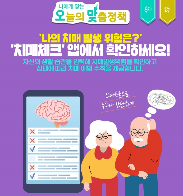 보건복지부의 치매체크앱 이라고 하는 것인데요, 앱스토어, 구글플레이에서 앱 다운 받아서 설치하시면 됩니다.