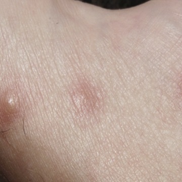 이 콜린성 두드러기 환자의 피부에 소량의 아세틸콜린을 주입해서 검사해 보면 주사를 맞은 부분 주변에 두드러기가 올라오는 것을 볼 수 있습니다. 자세하고 정확한 원인 등을 알 수는 없지만 이 두드러기 환자의 피부 속에는 가려움을 유발하는 히스타민도 대량으로 분비되고 있습니다.