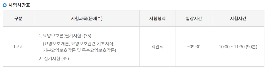 2021년 요양보호사 시험일정 - 과목 및 시험시간